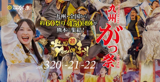 「九州がっ祭」は、熊本の学生が中心となって企画・運営を行っている、九州各地の祭りや団体が一堂に会する交流型イベントです。前身の「火の国YOSAKOIまつり」から、熊本地震を契機に名称とコンセプトを刷新し、「熊本地震復興応援九州がっ祭」として再始動。 2026年で第10回を迎えます。現在では、九州をはじめ全国から多様な団体が参加し、演舞やパフォーマンスを通じて地域間の交流を深める場として発展しています。