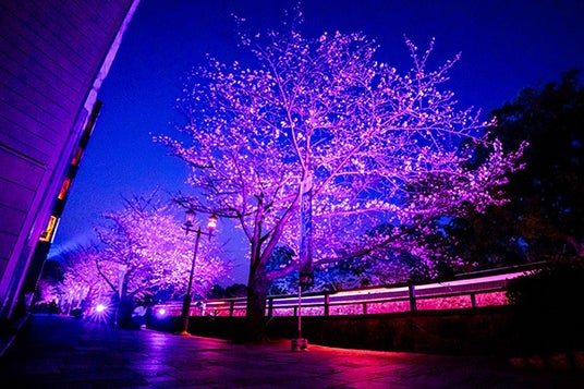 2016年の熊本地震をきっかけに始まった「九州がっ祭」。「つながろう九州!こころを一つに」をスローガンに、若者たちが主体となって熊本・九州を盛り上げ続けてきました。桜十字グループは昨年に続き、今年も特別協賛という形で参画いたします。桜をあたたかく照らす光は、単なる演出にとどまりません。桜十字グループの新たなロゴにも用いている「桜色」や「紫」を想起させるその光には、人・まち・未来を結び、ウェルビーイングな社会を広げていきたいという想いを込めています。熊本城長塀前通りに広がる桜並木が、温かな光に包まれる10日間。幻想的な夜桜の風景が、訪れる人の心に寄り添い、明日への活力へとつながることを願っています。