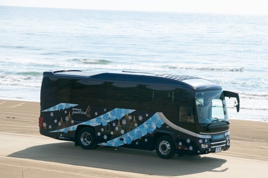 ラグジュアリーバスの外観は加賀友禅作家である毎田仁嗣氏がデザイン。