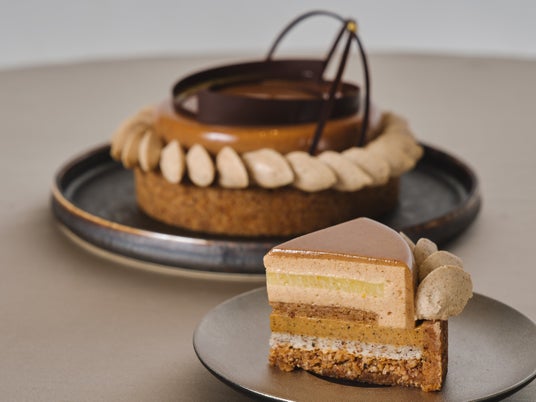 日本最大級のケーキショーである「ジャパン・ケーキショー東京」のグラン・ガトー部門で、2025年度銅賞を受賞。「遥」という名に込められた“想い”と“余韻”、そして人と人との“繋がり”を映した逸品は、自家製のプラリネと柚子、紅茶などを組み合わせた12層が織りなす味わいで、豊かな香りと爽やかさが調和した芸術的なハーモニーを生み出します。
