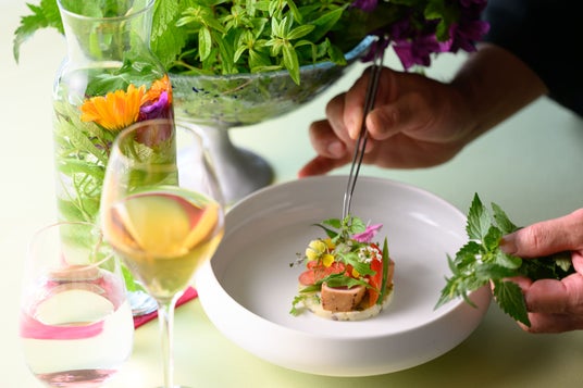 昨年大変好評いただいたコラボレーションペアリングランチが、今年も春に開催されます。フォションホテル京都では、毎日たくさん排出される紅茶葉殻を堆肥に混ぜ込み、滋賀・井入農園にてサステナブルハーブを育てる取り組みを行っています。ホテルと共にこだわりを追及してハーブを育てている井入農園のハーブティーや、フォションホテル京都グランティーマスター吉川がブレンドしたフォションティーを、シェフが腕を揮う一品一品の料理に合わせ、それぞれの解説を交えながらお食事をお楽しみいただけます。ダイニングに土を使わないサステナブルプランターで栽培された実際のハーブも登場し、摘みたてのハーブを使用してフレッシュな香りと彩りが添えられたお料理も存分にご堪能ください。