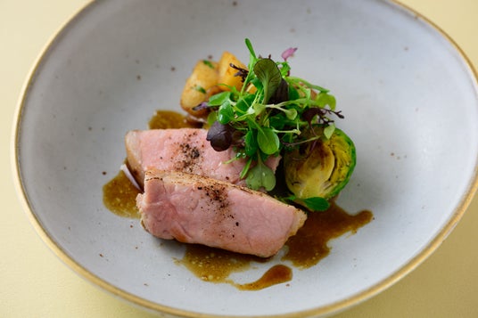 京つけもの西利の「発酵甘麹」で漬けた糸島豚のロティと新じゃがいものリヨネーズ