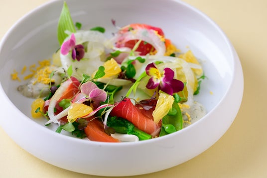 前菜/フォション風サーモンマリネ 春野菜と紀の川八朔のミモザサラダ