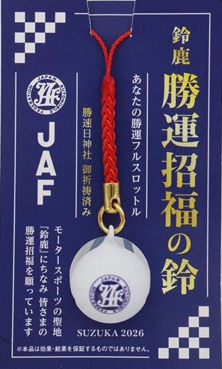 JAF会員の方は、「JAFスマートフォンアプリ」でマイカーやバイクを会場で「車両登録」又は既に登録された画面を提示していただくと、鈴鹿市内にある勝速日神社の御祈祷を受けた「鈴根付けストラップ」をプレゼント!