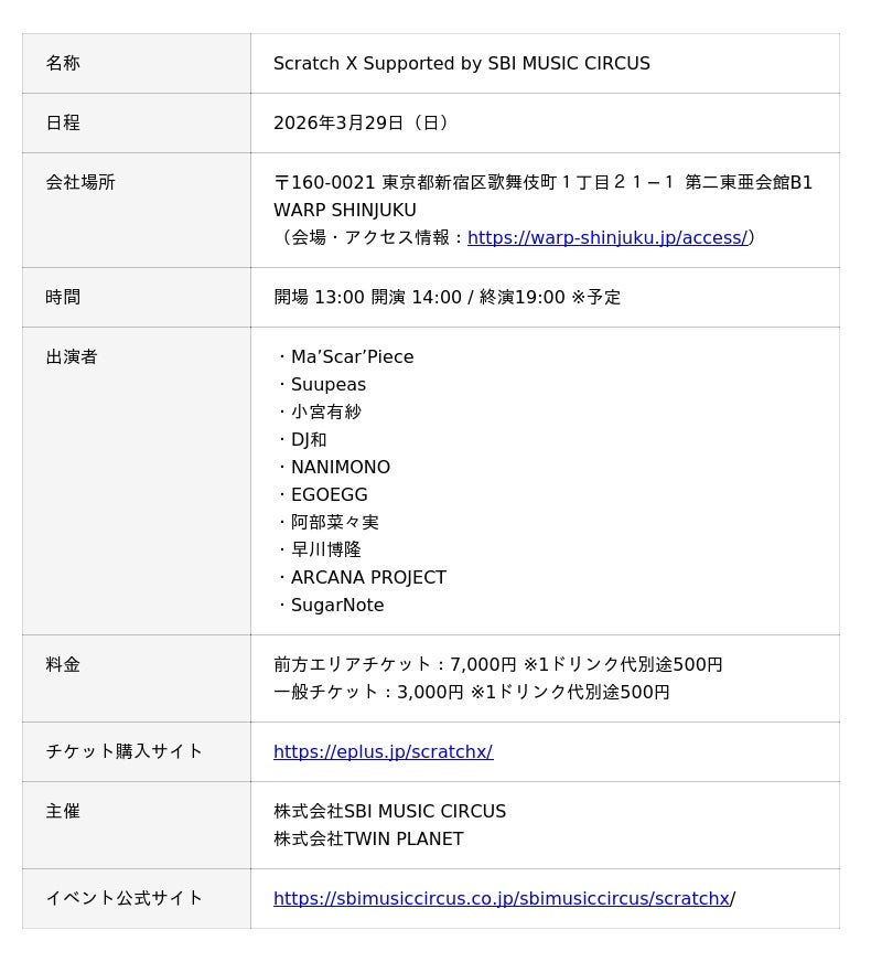 チケット購入はこちらから:https://eplus.jp/scratchx/