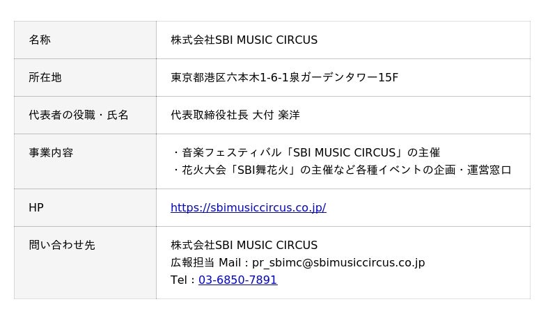 株式会社SBI MUSIC CIRCUS [email protected] 03-6850-7891