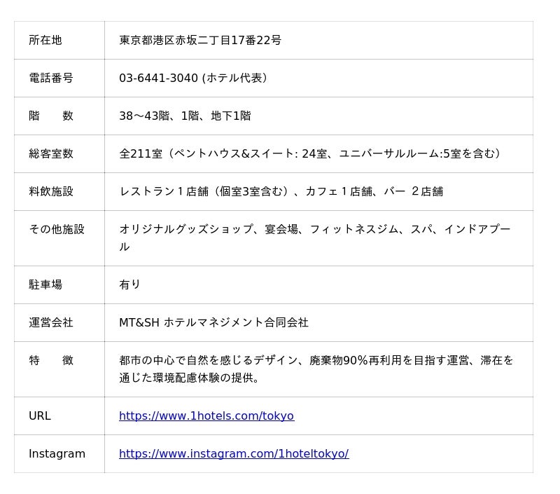 ■ 1 Hotel Tokyo概要