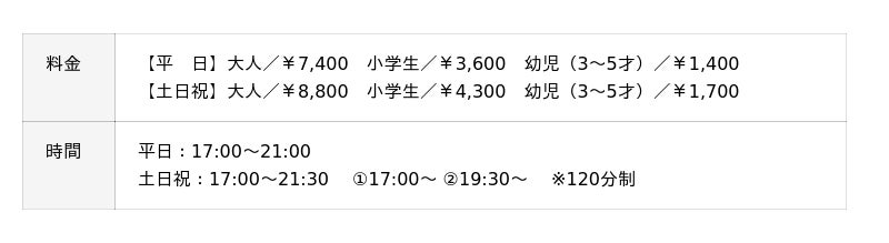 表記料金サービス料10%・消費税が含まれております。