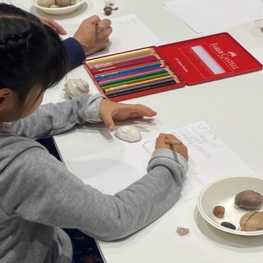 プロのイラストレーターと楽しむ、ひらめき創作。自然の種子や貝殻を観察し、自分だけのカタチや物語を見つけて絵本のような作品を描こう!子どもも大人も、独自のアイデアの出し方を学べる創作の時間です♪