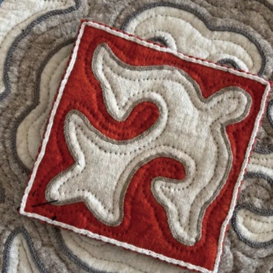 キルギス遊牧民の模様「オイモ」をテーマに、フェルトを使いコースターを作ろう。オイモは、大阪・関西万博キルギスパビリオン内の装飾である絨毯に使われたキルギス文化に欠かせない模様。オイモコースターを作り遊牧民の文化を体験しよう!