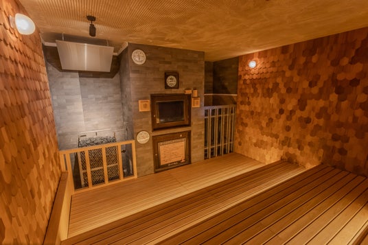 男性サウナ「おとこまえSAUNA」は、従来の約3倍出力のサウナヒーターを導入し、オートロウリュの間隔を15分から10分へ短縮。スタジアム型の本格サウナとして、濃密な蒸気とパワフルな熱を体感できる空間へと生まれ変わりました。