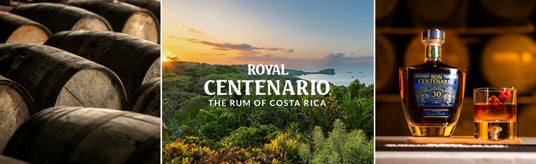 『ロイヤル・センテナリオ』は、国土の1/3が自然保護区に指定された中米の小国コスタリカの豊かな自然の中で造られるプレミアムラム。一番の特徴は、ラムの熟成にスコッチウイスキー樽を使用していること。すべての原酒は、スコッチウイスキーを代表する4つの地方「ハイランド」「ローランド」「スペイサイド」「アイラ」で ウイスキーを熟成していたホワイトアメリカンオーク樽に詰められ、熱帯雨林の川辺の熟成庫で熟成されます。