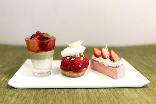 1. パティシエおすすめ春色スイーツプレートを人数分ご用意