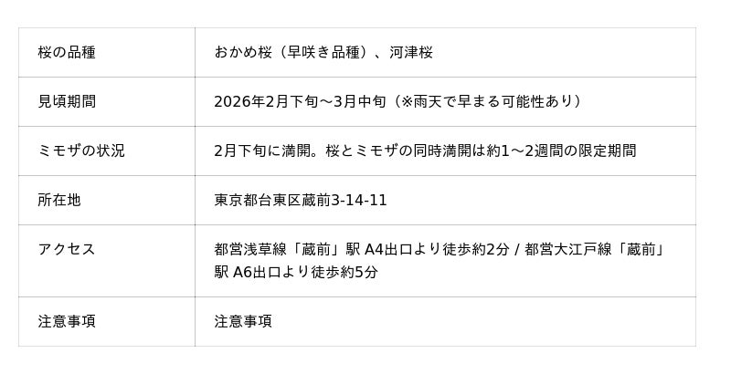蔵前神社の桜×ミモザ 見頃はいつからいつまで?(2026年)