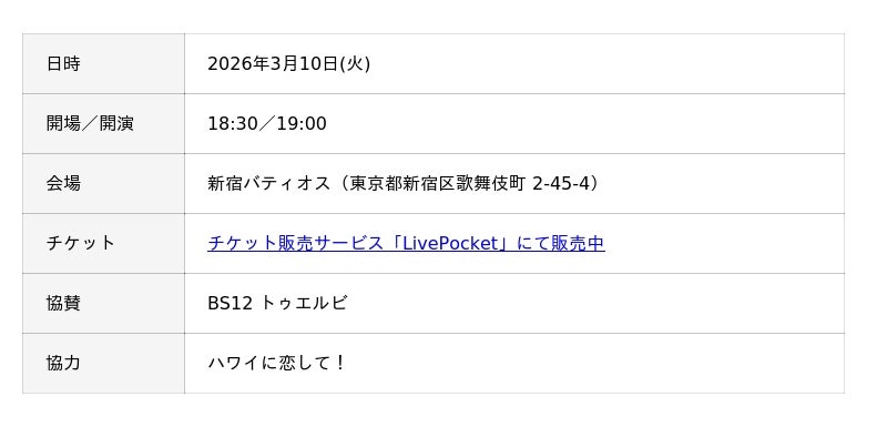 チケット販売期間:2026年2月20日(金) 12:00 ~ 2026年3月10日(火) 19:00