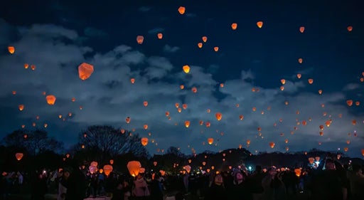 夜空に浮かぶ幻想的なランタンサンクスランタンは、アジアの伝統行事「天灯(スカイランタン)」を由来とし、願いを込めて空へ放つ文化を安全に再現した日本独自の進化形ランタンです。火を使わず環境に配慮したLED仕様で、夜空に無数の光が舞い上がる幻想的なイベントとして全国に広がっています。