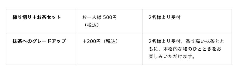 約60本の桜が咲き誇る絶景の中、日本の春をより深く味わっていただくための新オプションとして「練り切りとお茶のセット」をご用意いたしました。職人の手仕事によって、春の情景や季節の花々を繊細に表現した和菓子「練り切り」は、まさに食べる芸術品。春風が心地よいテラスや、桜並木の下で楽しむティータイムは、日常の喧騒を忘れさせてくれる優雅なひとときを演出します。 お好みで点てたての「抹茶」にグレードアップして、より本格的な和の趣を堪能するのもおすすめ。桜のピンクと抹茶の緑が、春の滞在をいっそう華やかに彩ります。