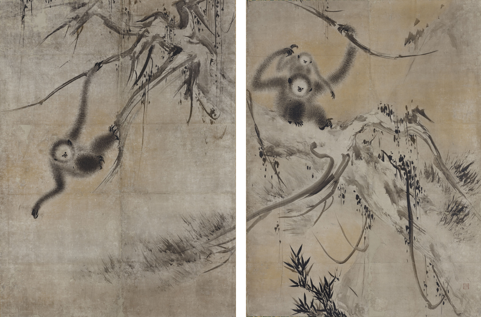 幸福感と躍動感あふれる双幅 重要文化財 長谷川等伯 「枯木猿猴図」