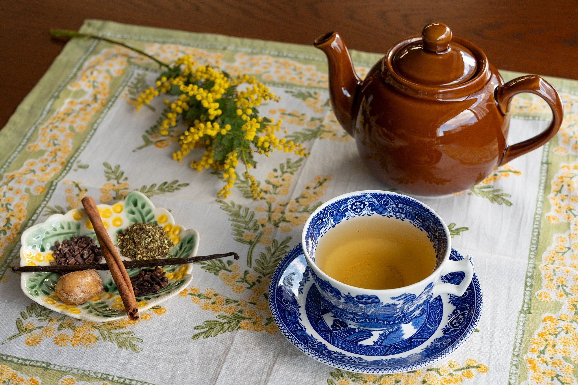 マダムヒロミ x Tea Bird Tea国際女性デーに寄せて、マダムヒロミがブレンドした特別なルイボスティー。グリーンルイボスとカカオニブのやわらかな土台に、シナモン、クローブ、生姜、バニラを重ねました。カカオとバニラのほのかな甘さと、スパイスの温もり。それはまるで、春を告げるミモザの花のように、優しく心を照らす一杯です。