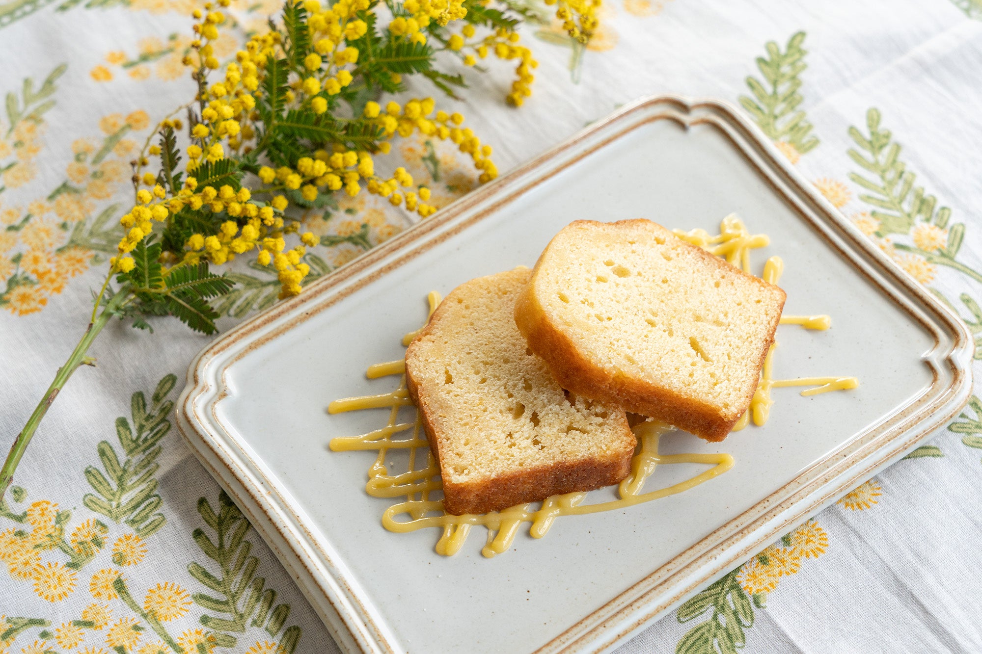 アンのレモンケーキ こだわりレモンカードを添えてマダムが英国留学していた頃に下宿していた一軒家の大家さんだったアンはマダムに色々なお菓子のレシピを教えてくれました。このレモンケーキもそのひとつ。どこか懐かしく、優しい味わいのレモンケーキです。