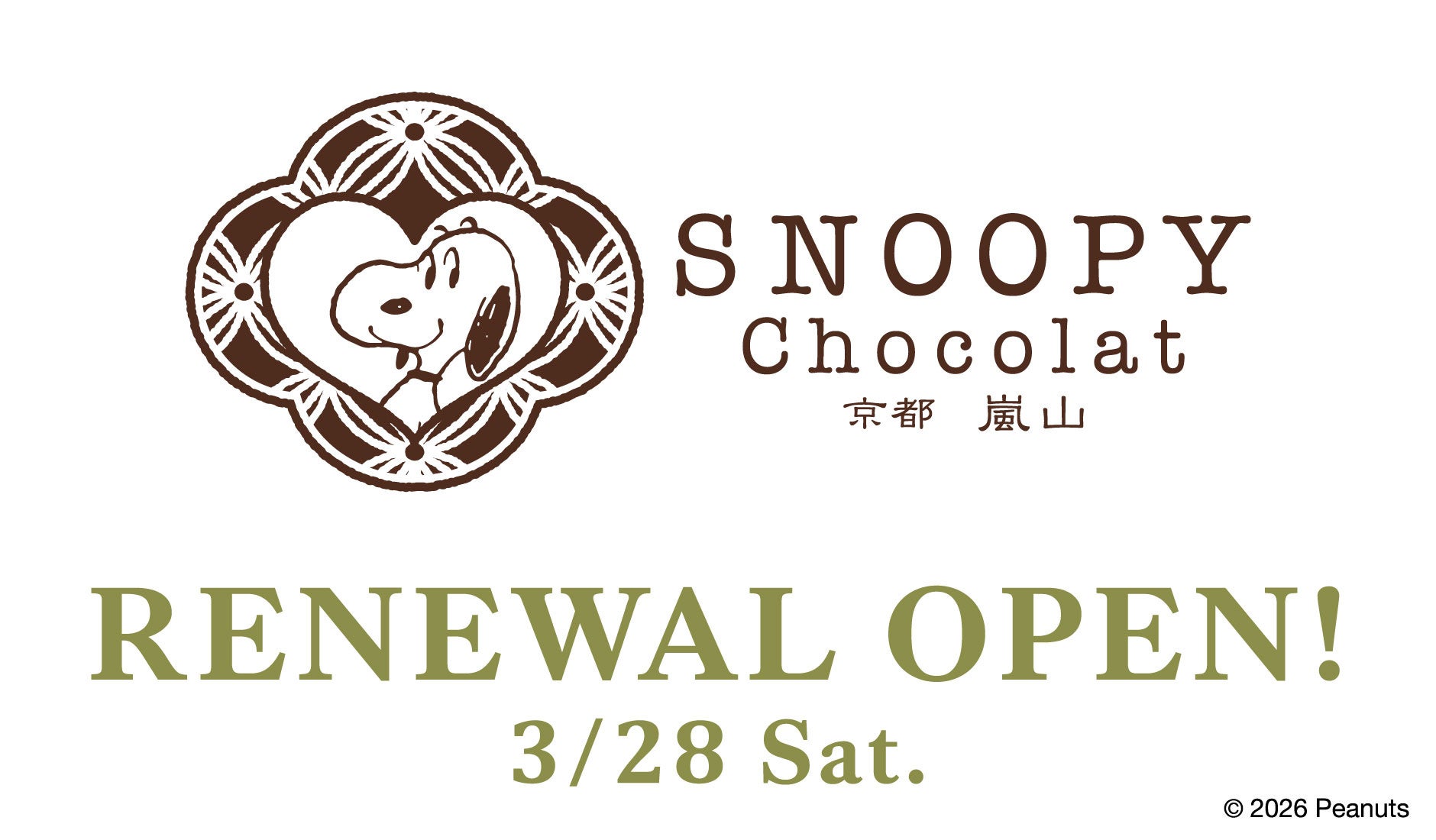 株式会社寺子屋(京都市右京区 代表取締役 海蔵講平)は、「SNOOPY Chocolat嵐山店」を、2026年3月28日にリニューアルオープンいたします。