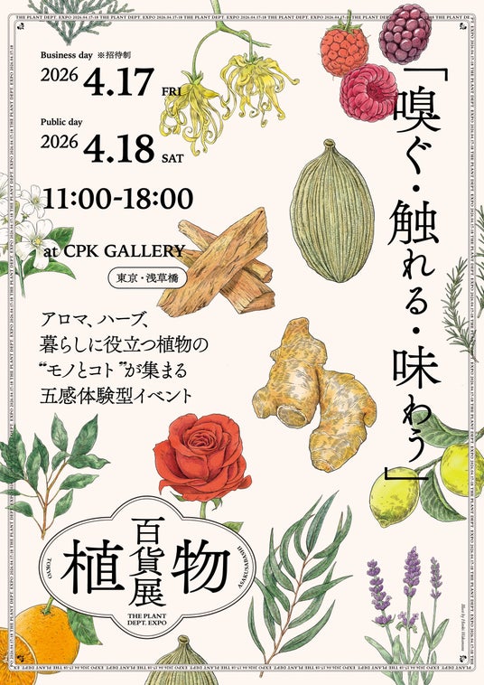 株式会社生活の木(本社:東京都渋谷区 代表取締役:重永忠 以下 生活の木)は、日本コパック株式会社と共に、2026年4月17日(金)・18日(土)の2日間、東京・浅草橋の「CPK GALLERY」にて、百貨店のように多種多様な製品が集まり、展覧会のようにその背景やストーリーを知ることができる体験型マーケットイベント「植物百貨展」を開催いたします。