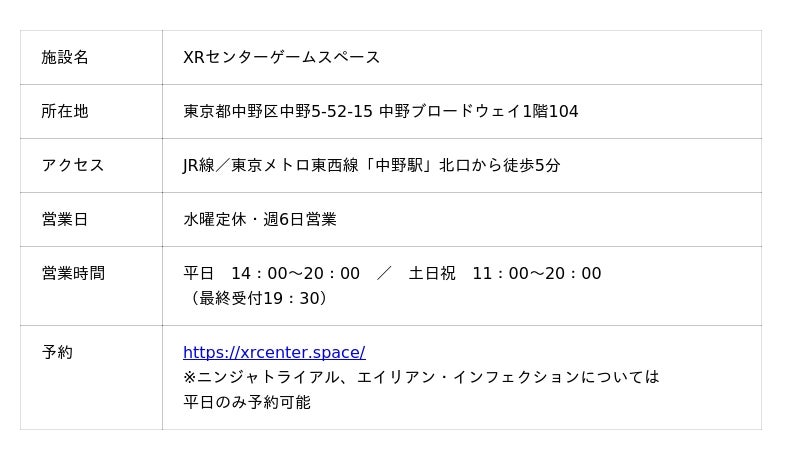 会場は中野ブロードウェイ1階にある直営店舗「XRセンターゲームスペース」。