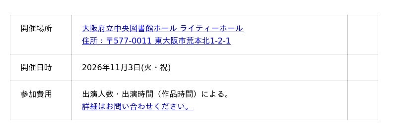 出演申込は2026年3月2日から2026年9月13日まで受け付けています。詳細やお申し込み方法については、公式ウェブサイトをご覧ください。
