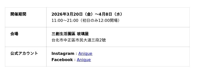 ECショップ「Anique Shop」: https://go.anique.jp/WG8cvcFUuk
