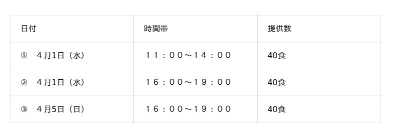 【販売数】 合計120食(各回限定 40食)