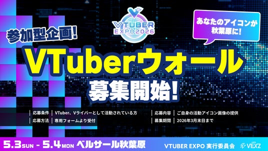 VTUBER EXPO実行委員会(幹事:株式会社VEXZ)は、VTuber文化のさらなる発展と普及を目的とした世界初・世界最大級(※自社調べ)の体験型博覧会「VTUBER EXPO 2026」を、