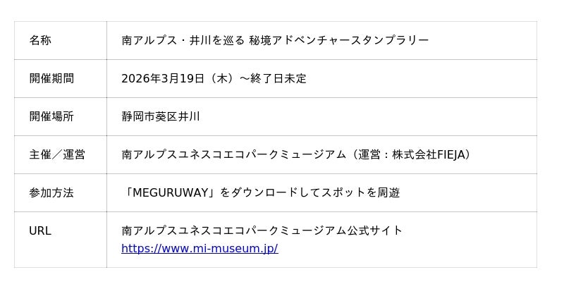 ■「南アルプス・井川を巡る 秘境アドベンチャースタンプラリー」開催概要