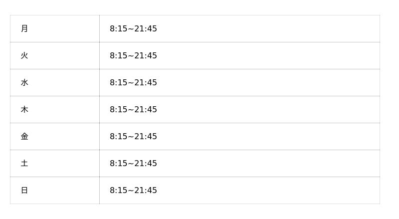 ※オープン時の営業時間となり、変更となっている可能性がございます。