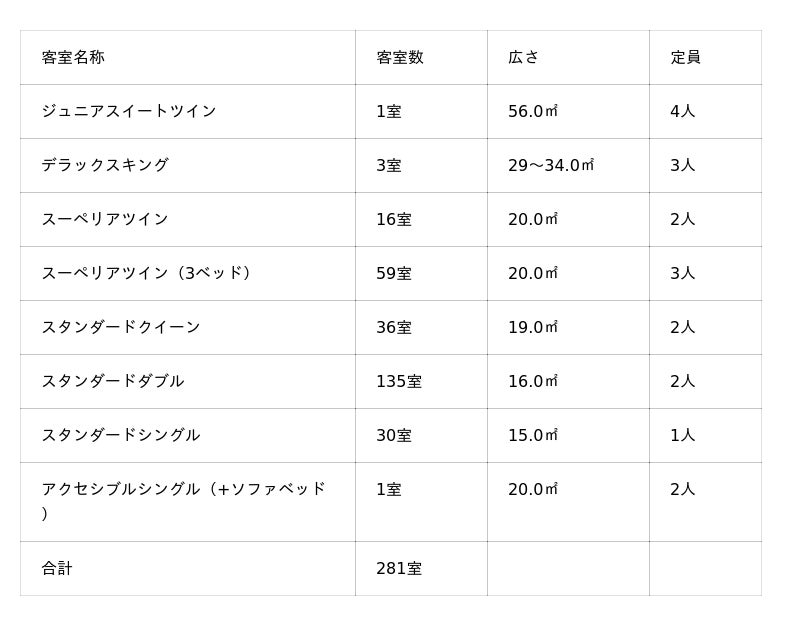2.ジュニアスイートツインは最大4名、デラックスキングは最大3名まで宿泊可能へと定員を拡大。グループやファミリー、インバウンドの連泊ニーズにも応える仕様へと進化。