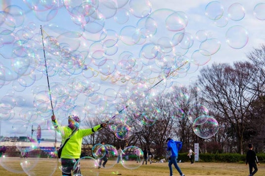 長年にわたり開発したシャボン玉液で巨大なシャボン玉やシャワーのようなシャボン玉で、お子さまを200%笑顔にします!