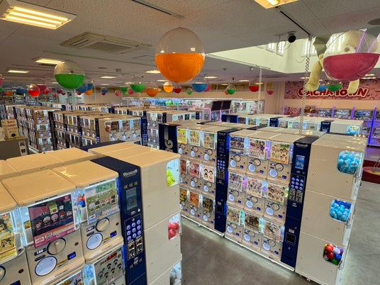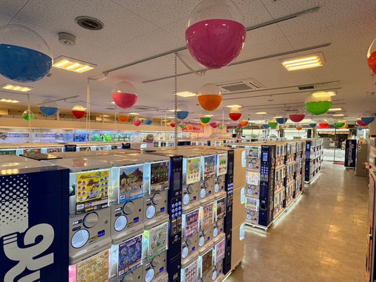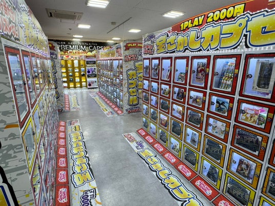カプセルトイは当社製品のクルポン9を70台設置。1Fだけではなく3Fにもカプセルトイあります!3Fはキャッシュレス決済専用の「ミライ」型カプセルトイコーナーです!
