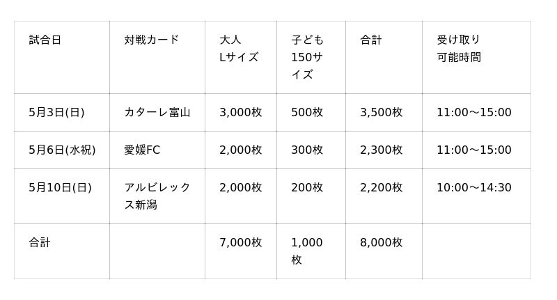 1.各試合の先着引き換え枚数と引き換え可能時間