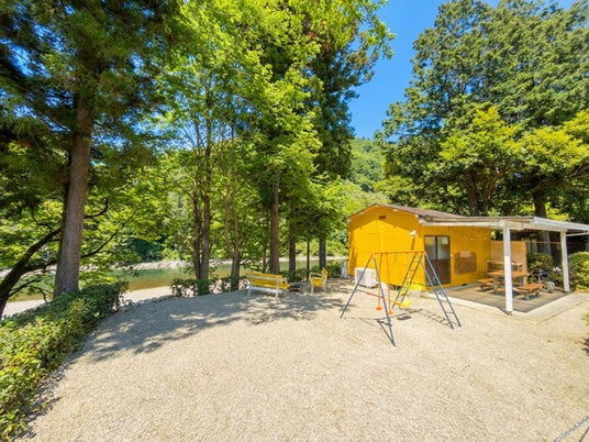 室内にはキッズテントやローチェア、ローテーブル、カセットコンロを設置。お部屋の中でもキャンプ気分を楽しめる特別な空間になっており、室外には温水シンクや焚き火台がついています。