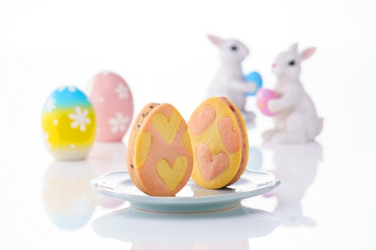春の訪れを祝う色鮮やかな幸せのたまごのサブレ。2種類の生地をハートでくり抜き丁寧にはめることで2つのかわいいたまごができあがりました。ハートをあしらわれたたまごのサブレでフランボワーズやブルーベリーのフルーツジャムとホワイトチョコをはさみ、たまご感をしっかり感じるサクッとした食感のサブレから華やかなフルーツの香りを感じる限定サブレです。