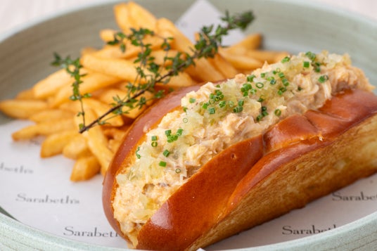サラベス BASEGATE横浜関内店限定のメニューとして、2品のメニューが登場します。港町・横浜をイメージし、シーフードをメインにした「クラブミートロールサンド」は、甘みのあるクラブミートをたっぷり使い、セロリとエシャロットで爽やかなアクセントを加えたサラベススタイルのクラブロール。コクのあるオランデーズとケチャップを合わせた特製ソースが、クラブの旨味を引き立てています。ピクルスとフレンチフライを添えて提供します。また、カリッと香ばしくグリルしたプレッツェルブレッドに、甘く炒めたオニオンと、とろけるグリュイエール&モッツァレラチーズをサンドした「プレッツェルチーズサンド」が登場。、濃厚でクリーミーなチーズの味わいを引き立てる、やさしい酸味のトマトスープと共にお楽しみください。