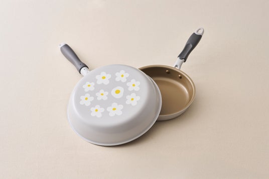 ガス火専用の軽量フライパンに手書き風の白いお花がデザインされた、春らしいかわいいフライパンです。