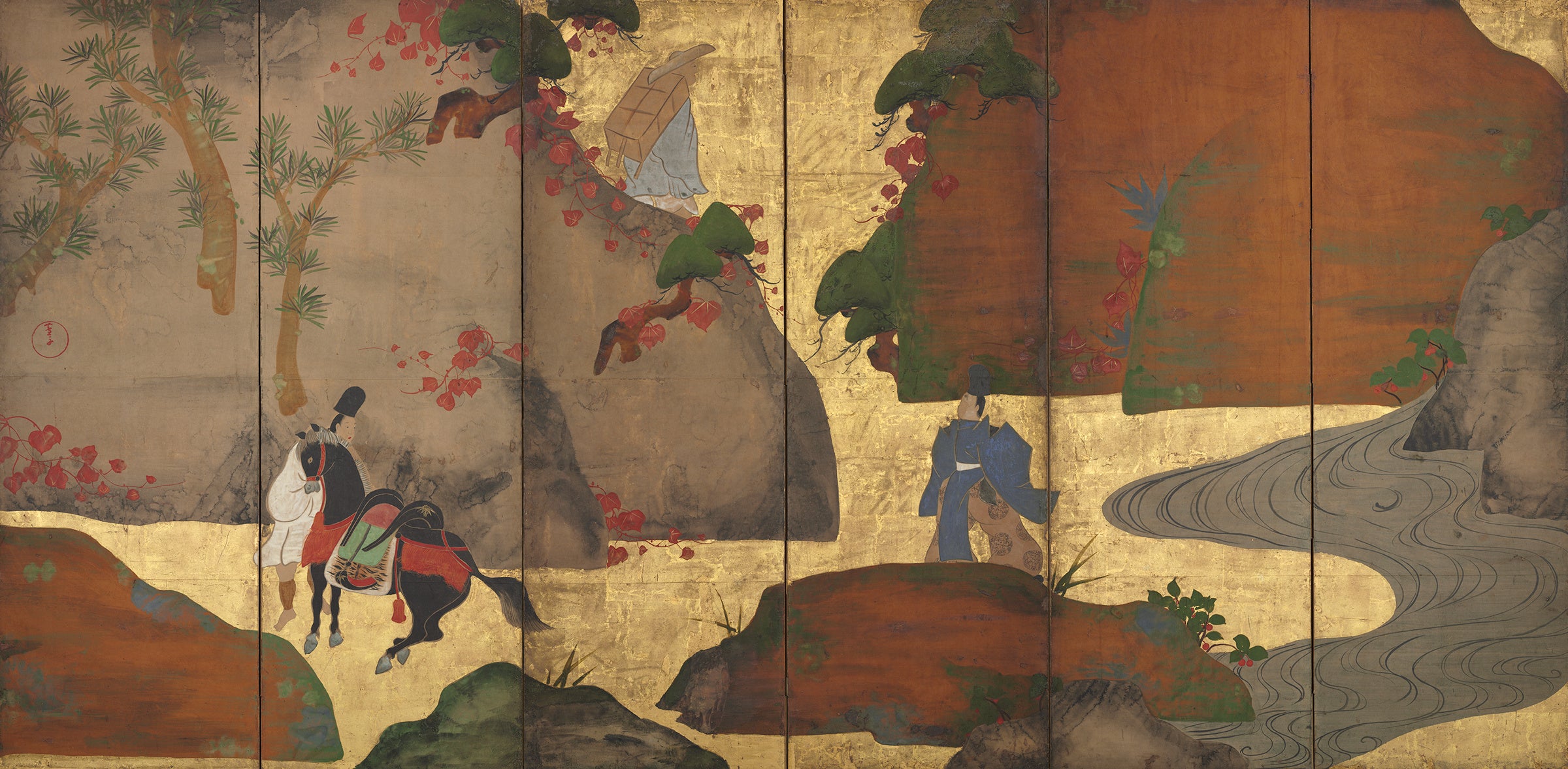 蔦の細道図屏風 深江芦舟筆 6曲1隻 紙本金地着色 日本・江戸時代 18世紀 クリーブランド美術館蔵
