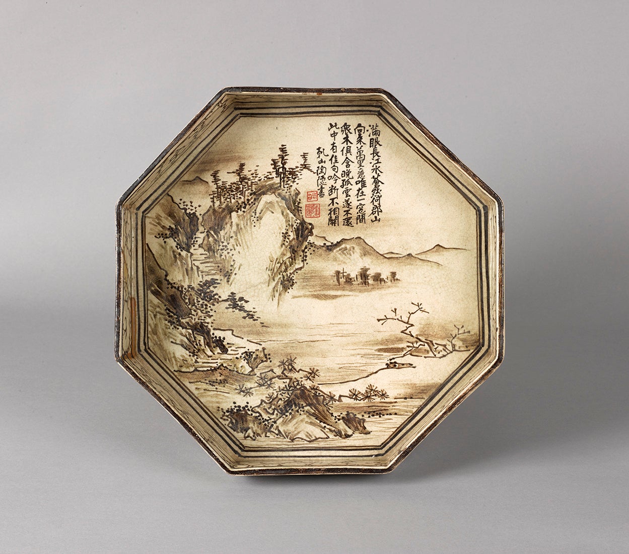 銹絵山水図八角皿 尾形乾山作 1枚 日本・江戸時代 18世紀 個人蔵