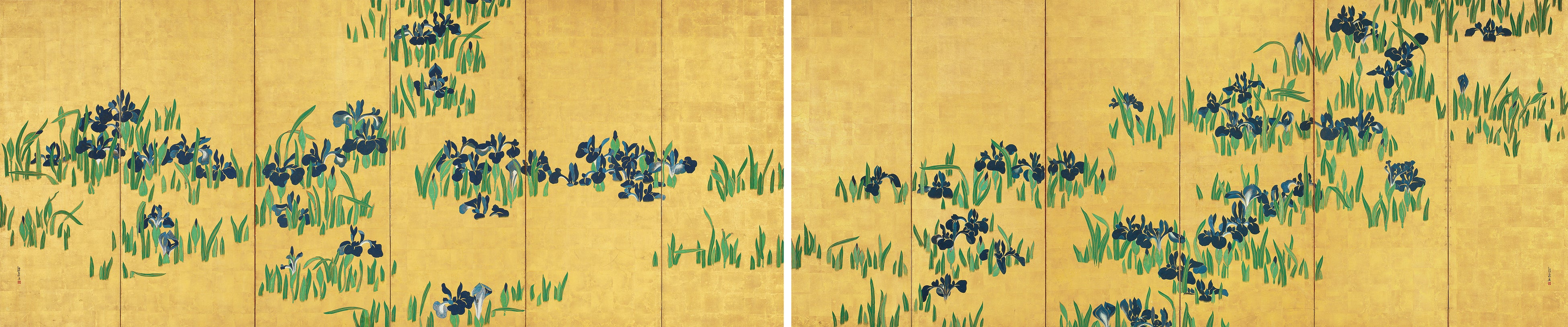 国宝 燕子花図屏風 尾形光琳筆 6曲1双 紙本金地着色 日本・江戸時代 18世紀 根津美術館蔵