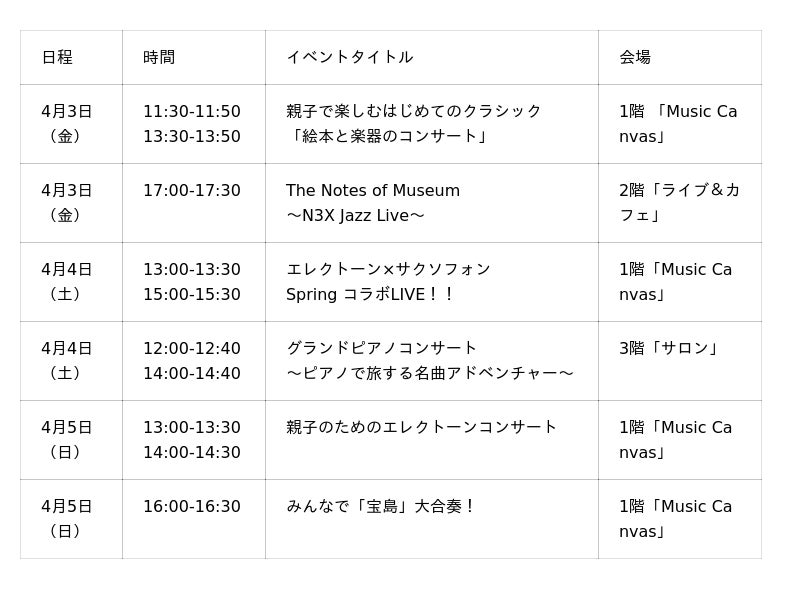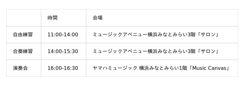 ※スケジュール・体験楽器は予告なく変更となる場合があります。