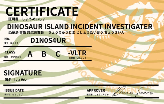 調査結果に応じて発行される調査証明書は、来場回数によってCランク、Bランク、そして最高位のAランクへとランクアップ。Aランクに到達した精鋭隊員には、勇気の証として記念の「恐竜メダル」をプレゼント。調査シートには複数のバリエーションがあり、来場のたびに異なるミッションに挑戦できるため、繰り返し訪れることで恐竜島の秘密により深く迫ることができる仕組みです。