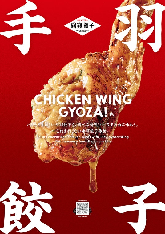 JIJI GYOZAが提供する「鶏鶏餃子(手羽餃子)」は、海外では日常的な人気フードである「バッファローチキン」と、日本で古くから親しまれてきた人気グルメ「餃子」を掛け合わせた、全く新しいストリートフードです。どちらの文化にも馴染みのある2つの食材を融合させることで、新たな日本グルメとしての価値を引き出した自社開発商品です。照り焼き・チリクリスプ・わさびマヨ・ガーリックペッパーなど多彩なフレーバーソースで楽しめるよう進化を遂げており、訪日外国人だけでなく日本人にも愛される味とスタイルを追求しています。