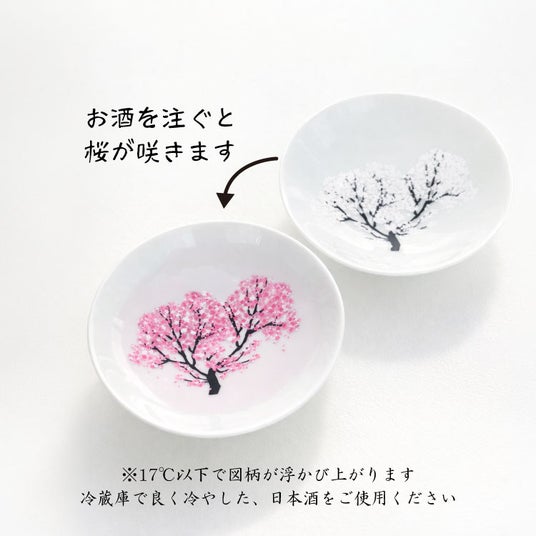 キンと冷えた冷酒を注ぐと桜が咲きます。