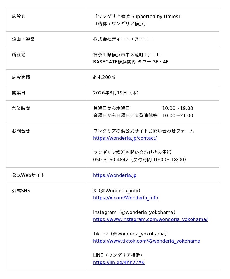 「ワンダリア横浜 Supported by Umios」施設概要