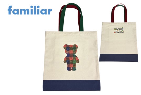 神戸発祥のベビー・子ども関連ブランド「ファミリア」とのコラボレーショングッズ!エリック・カールの描いたアートワークが、チェック柄のクマのシルエットに。まち無しでA4サイズがゆったり入るサイズです。